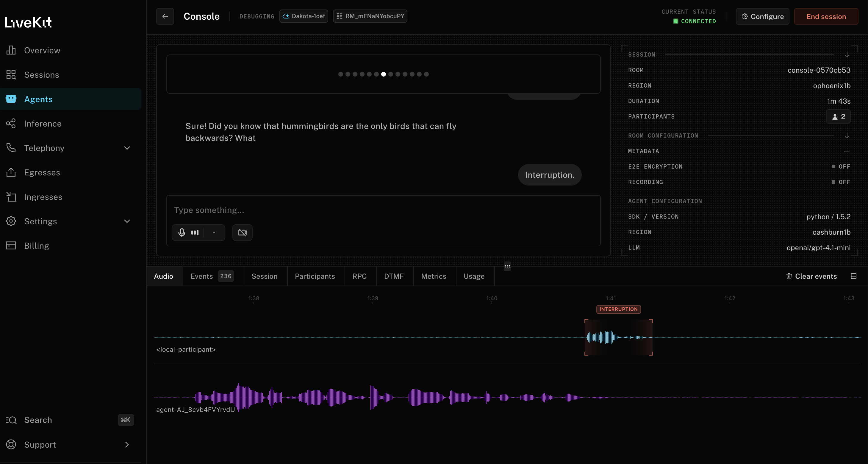 Agent Console is available for all users in the LiveKit Cloud dashboard. If you're already building voice agents, it should speed up debugging right away. If you're evaluating platforms, it should clarify what to look for: not just a runtime, but developer tooling that helps you debug voice agents in real time.