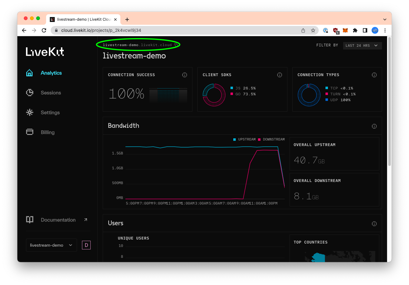 And that’s it, you’re now ready to add WebRTC to your app! LiveKit Cloud will take care of scaling resources horizontally and making sure your users have low latency connections to each other from anywhere in the world.